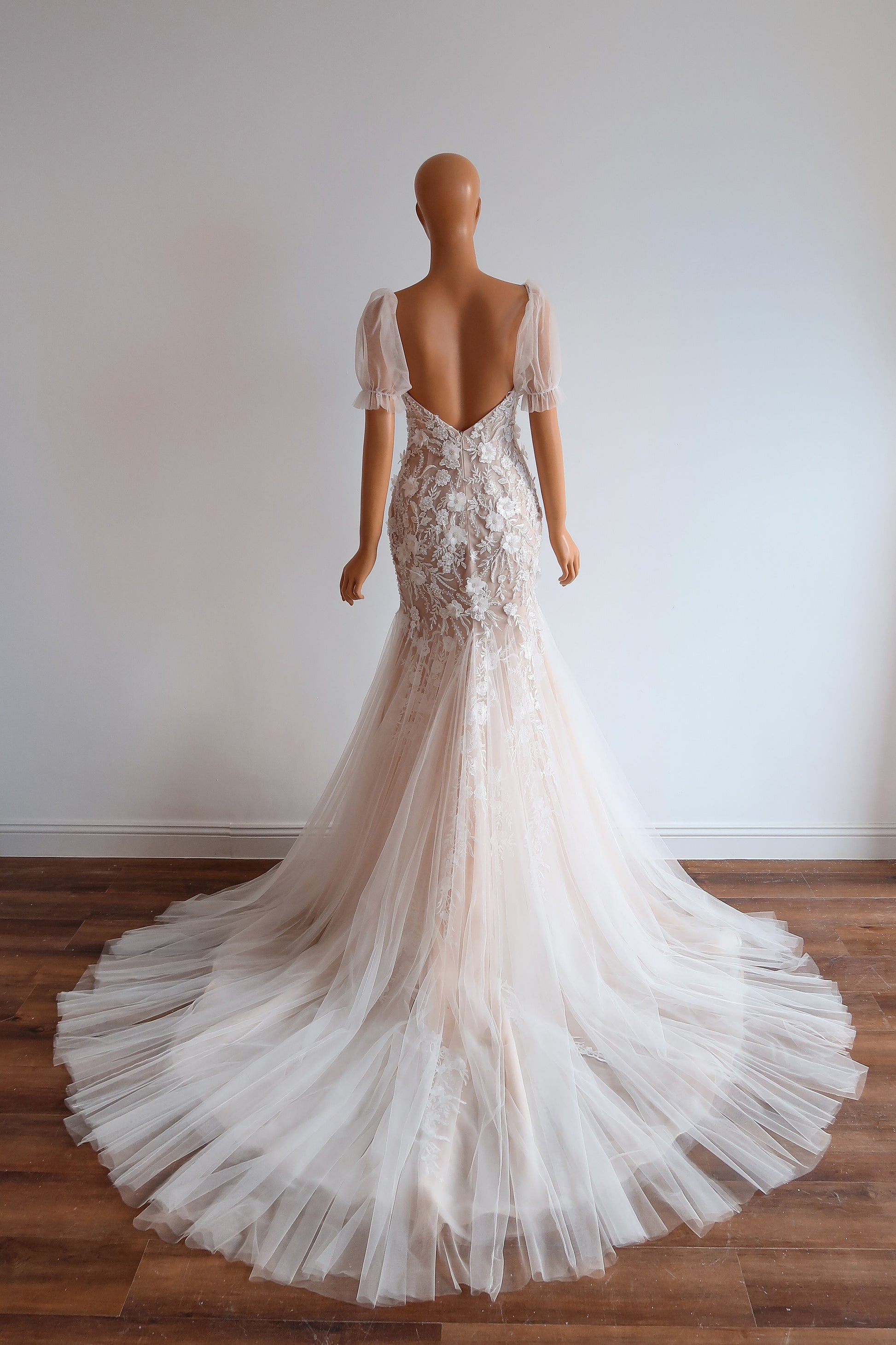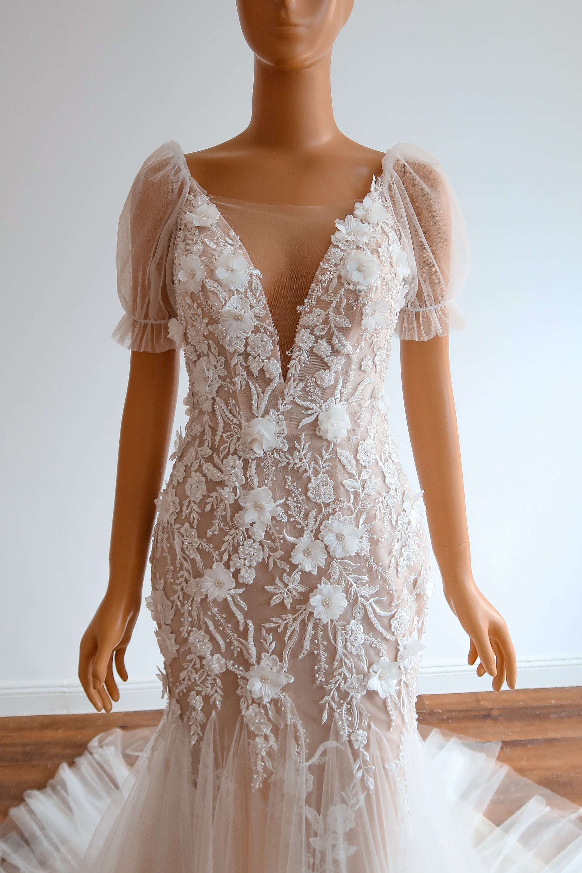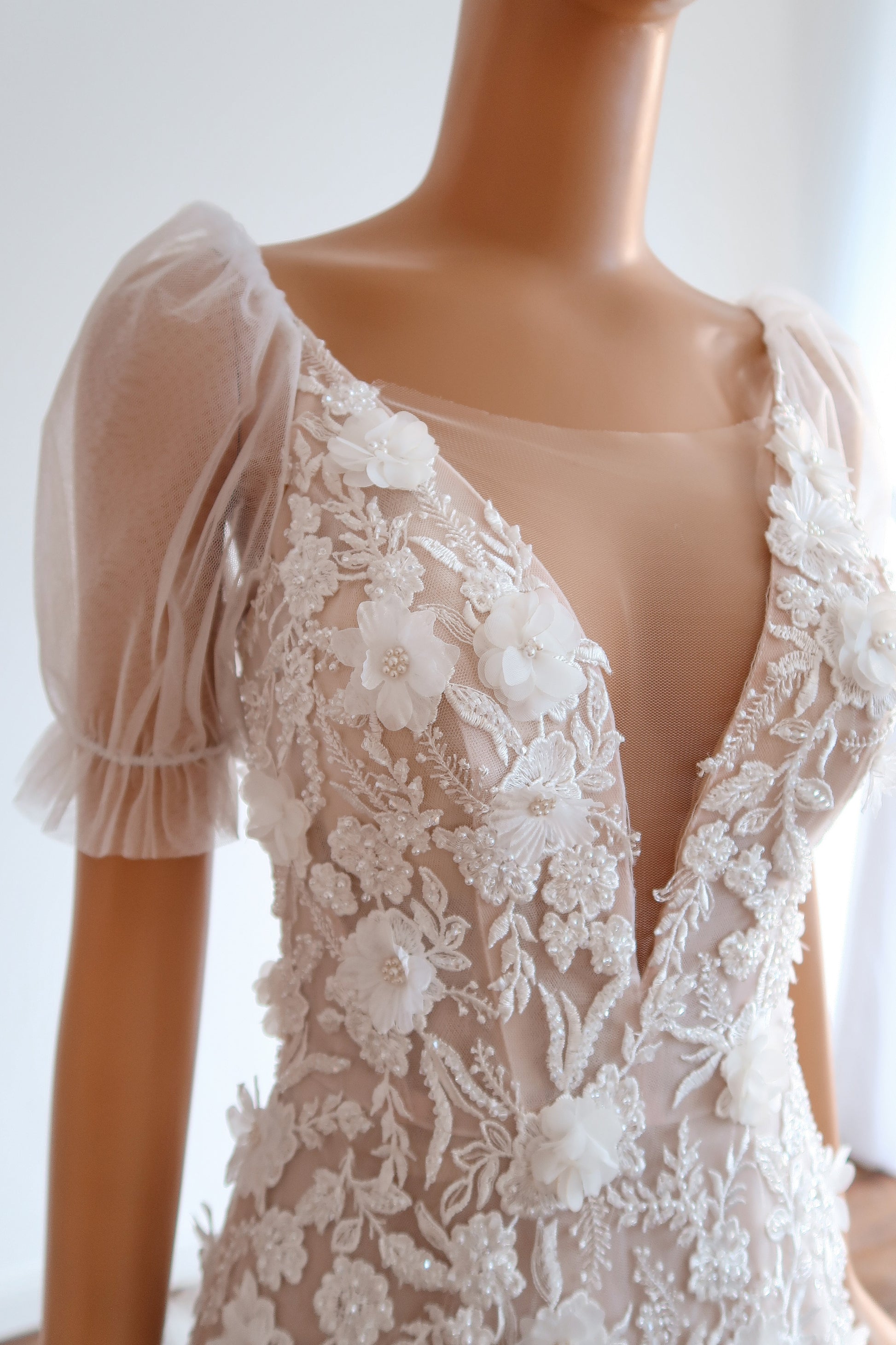 Dalia Wedding Dress: Cottagecore Elegance with 3D Flowers & Puff Sleeves