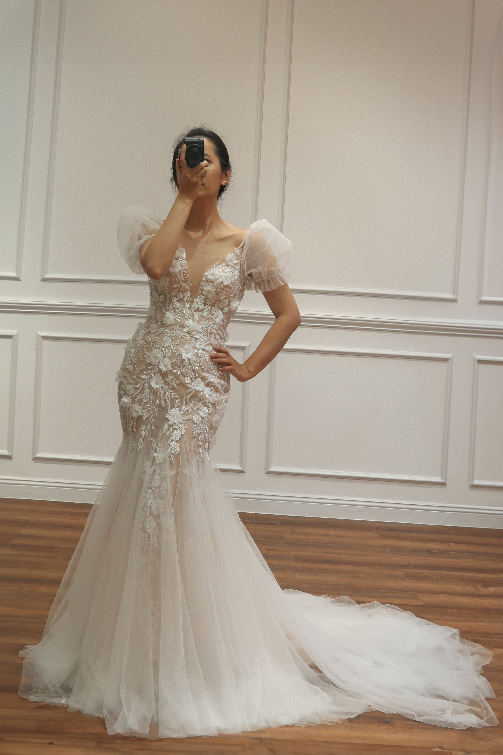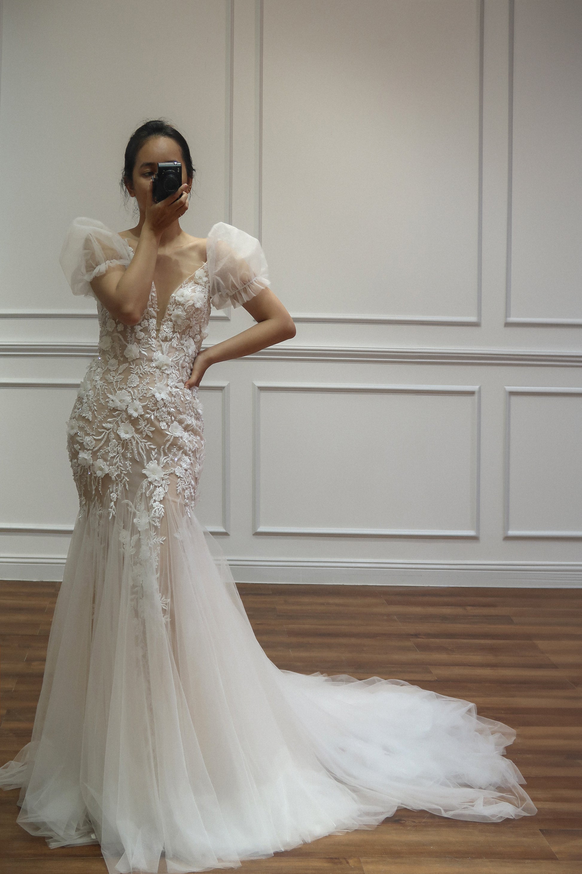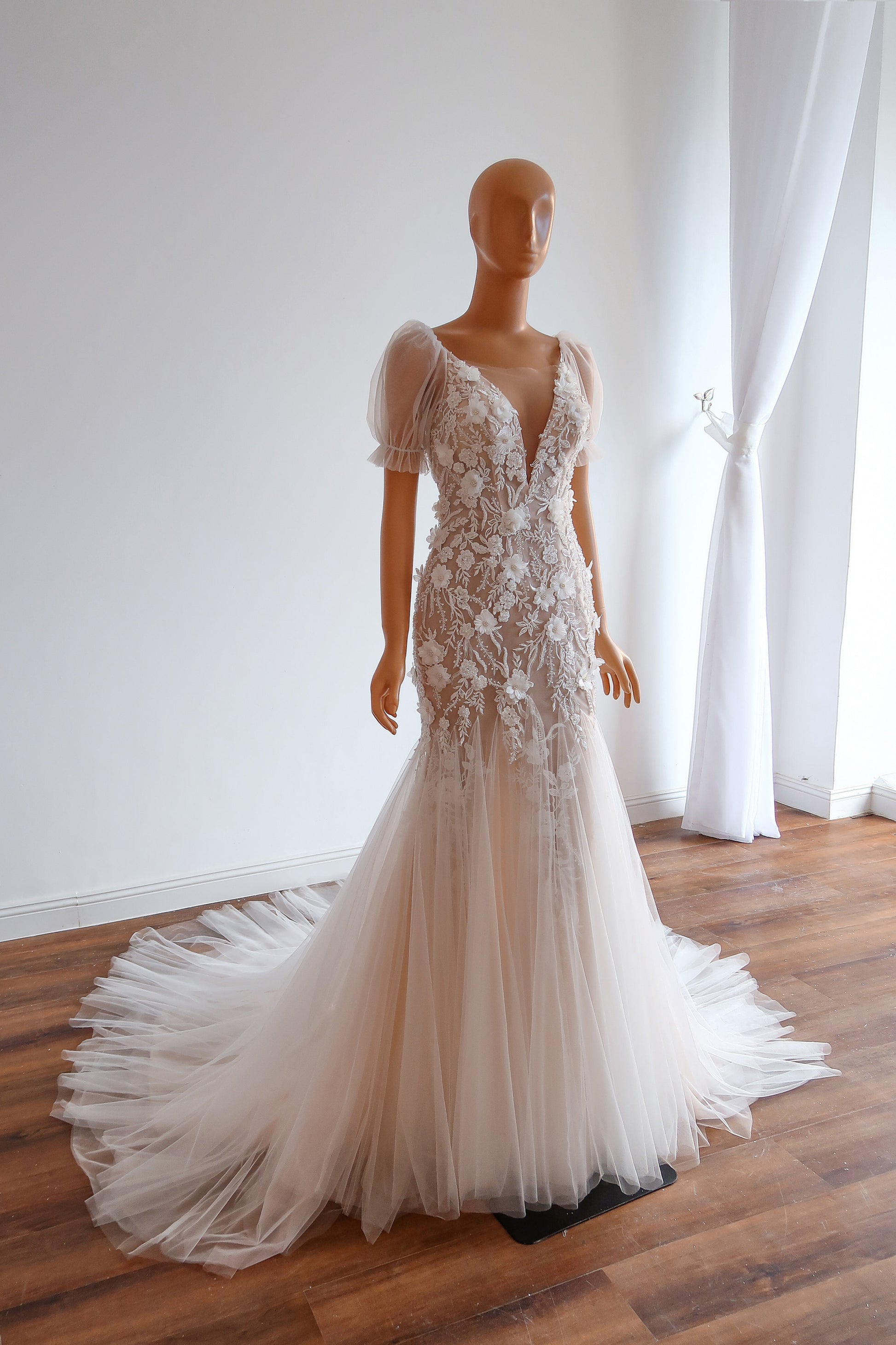 Dalia Wedding Dress: Cottagecore Elegance with 3D Flowers & Puff Sleeves