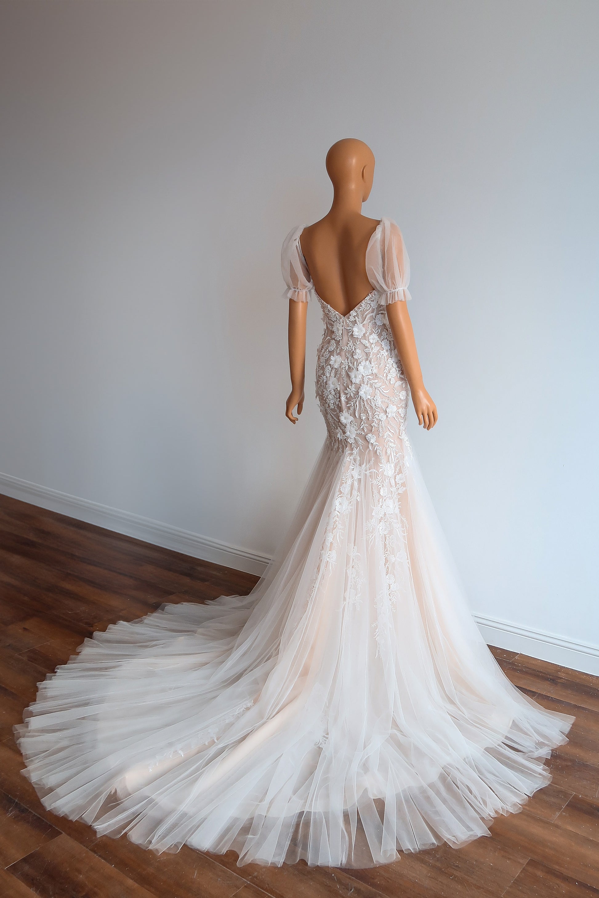 Available in champagne, white, and blush, this dress is designed to make your fairy-tale moment unforgettable.