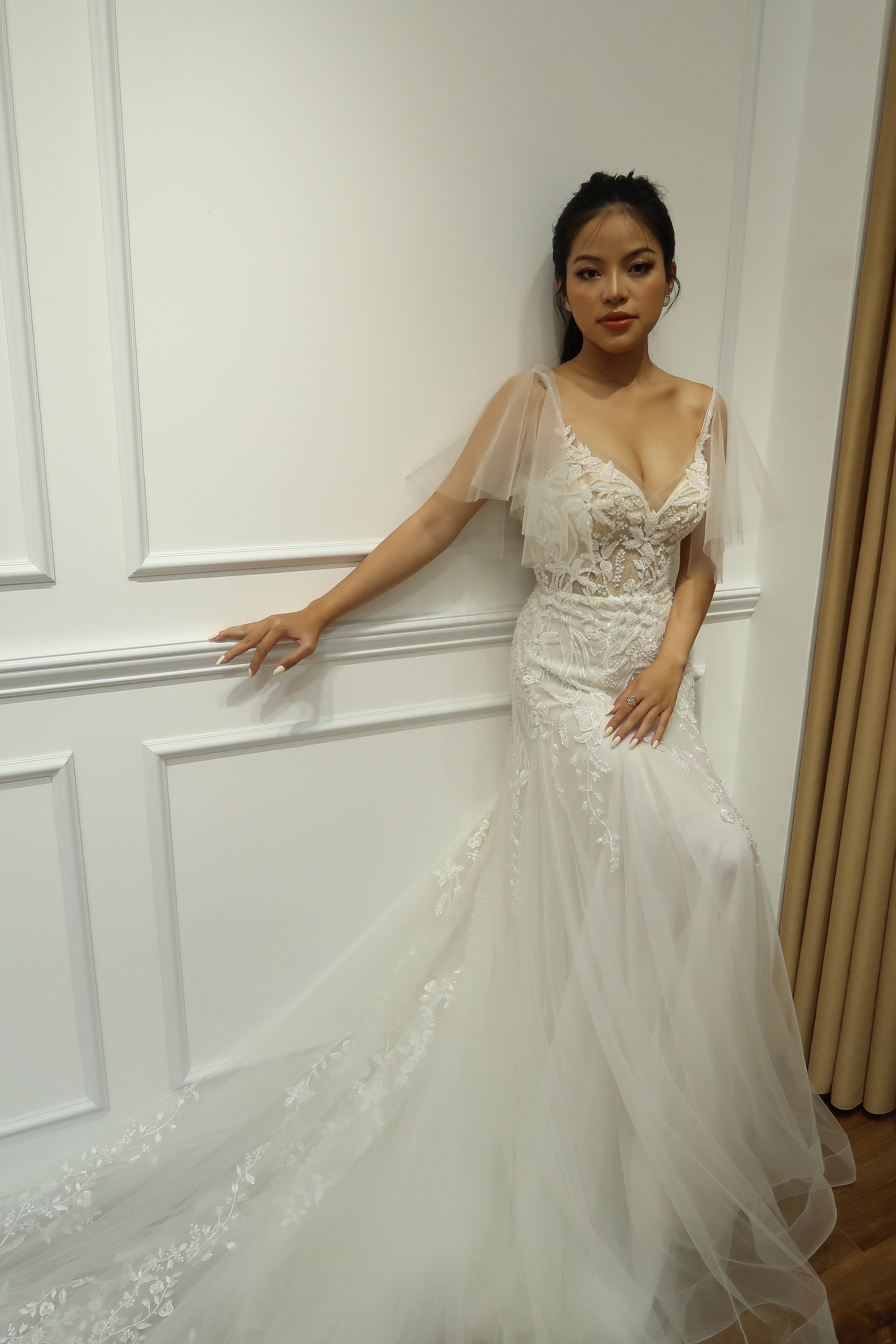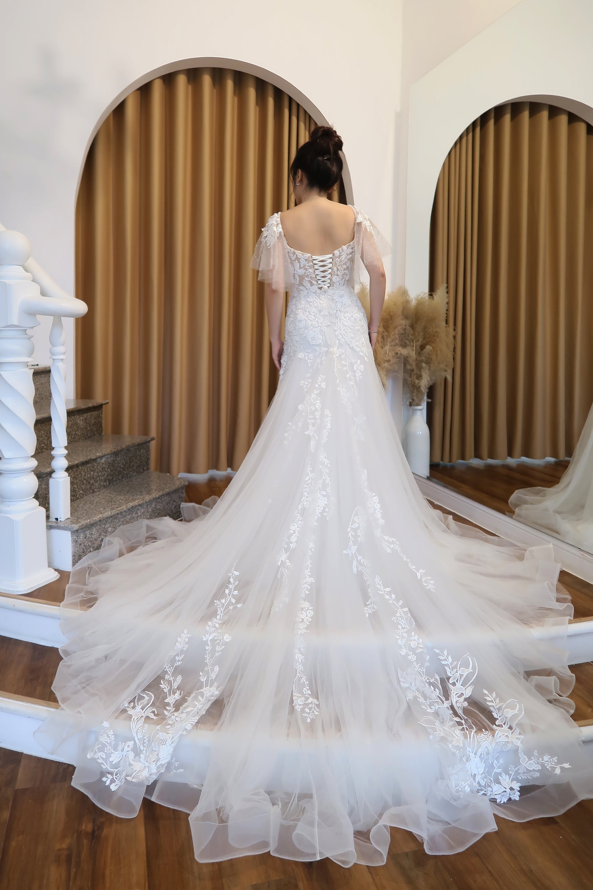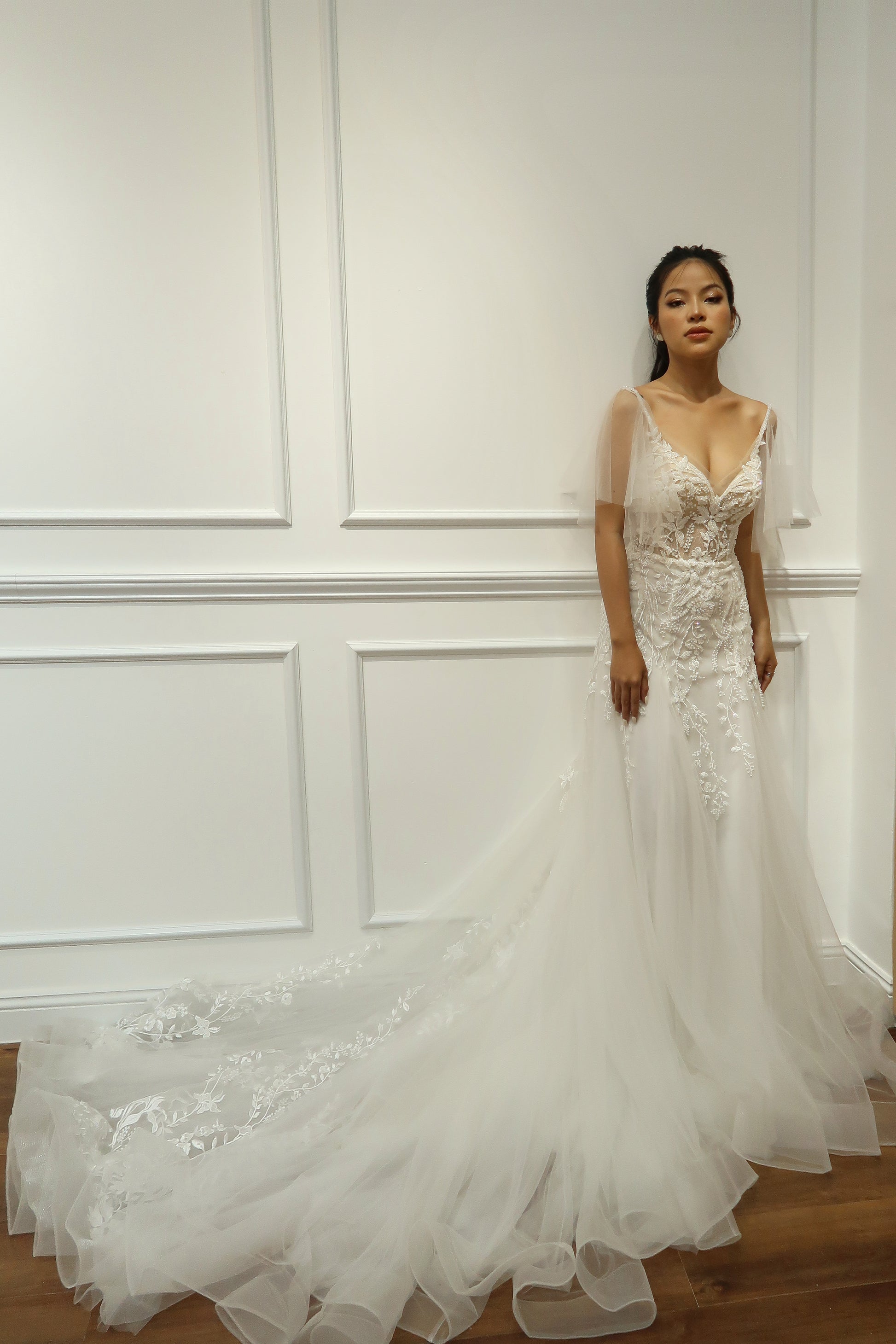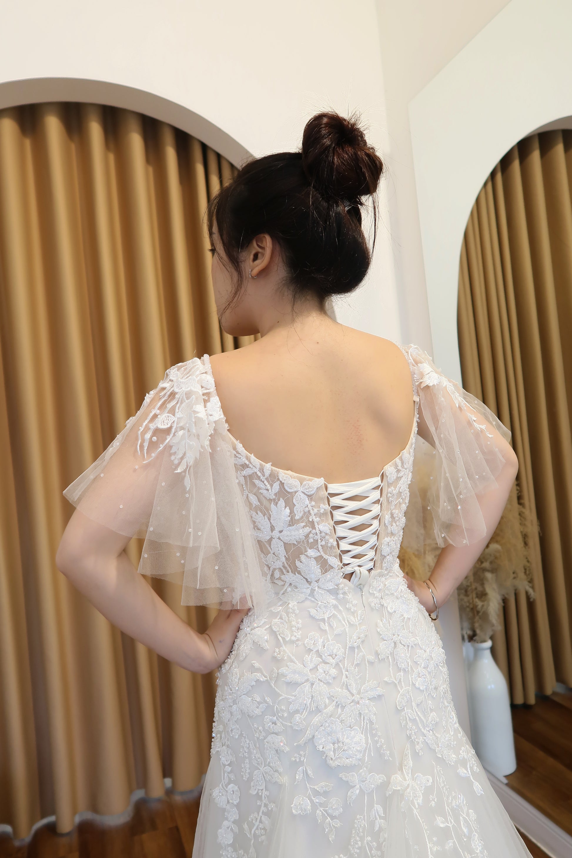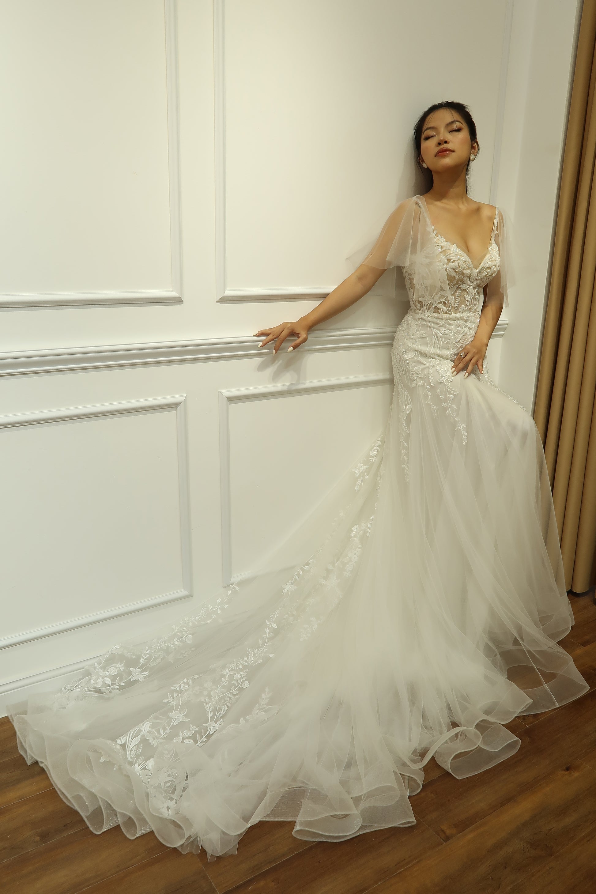 - Hidden boning bodice with V-neckline and built-in pads for extra support.