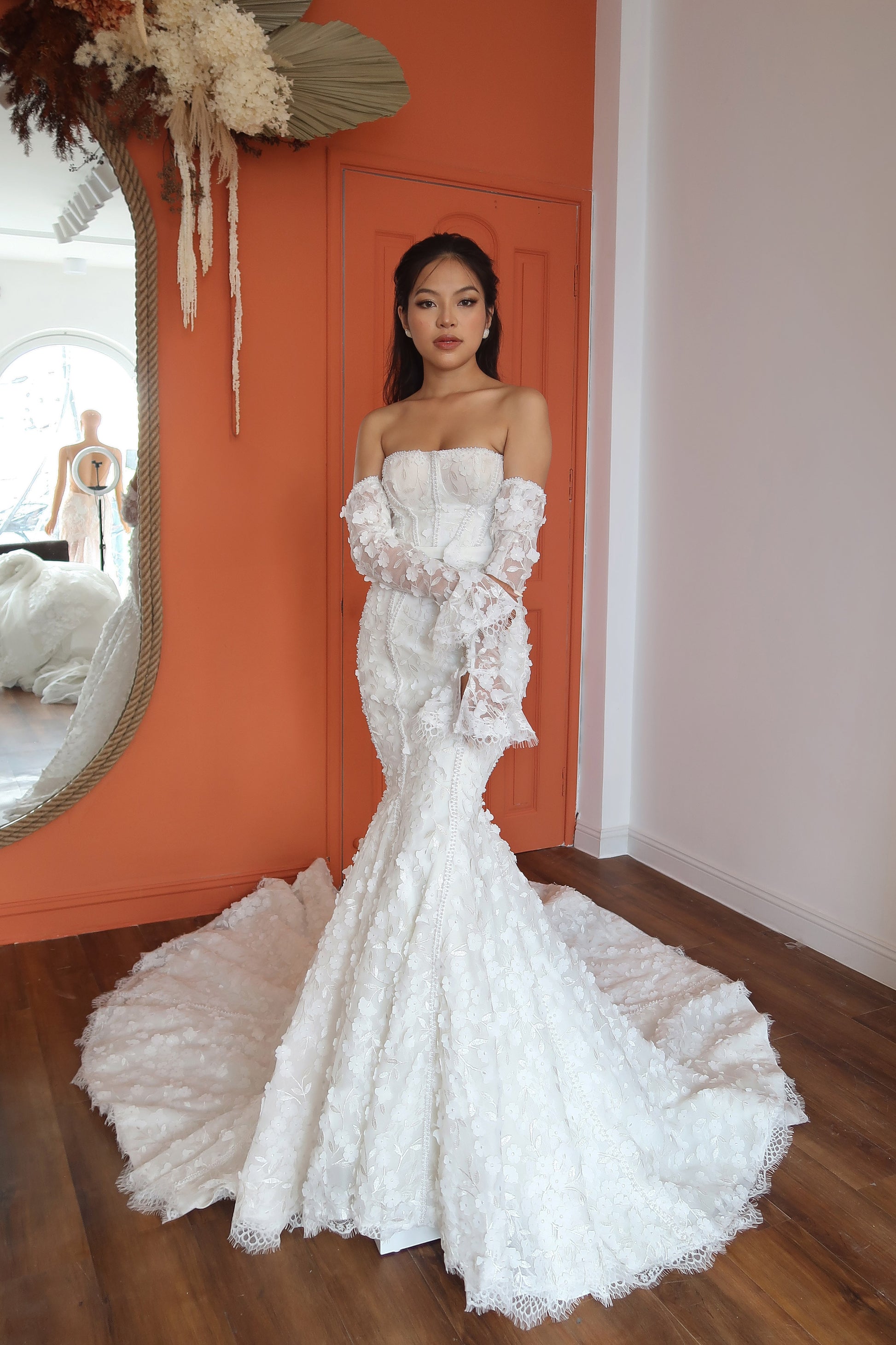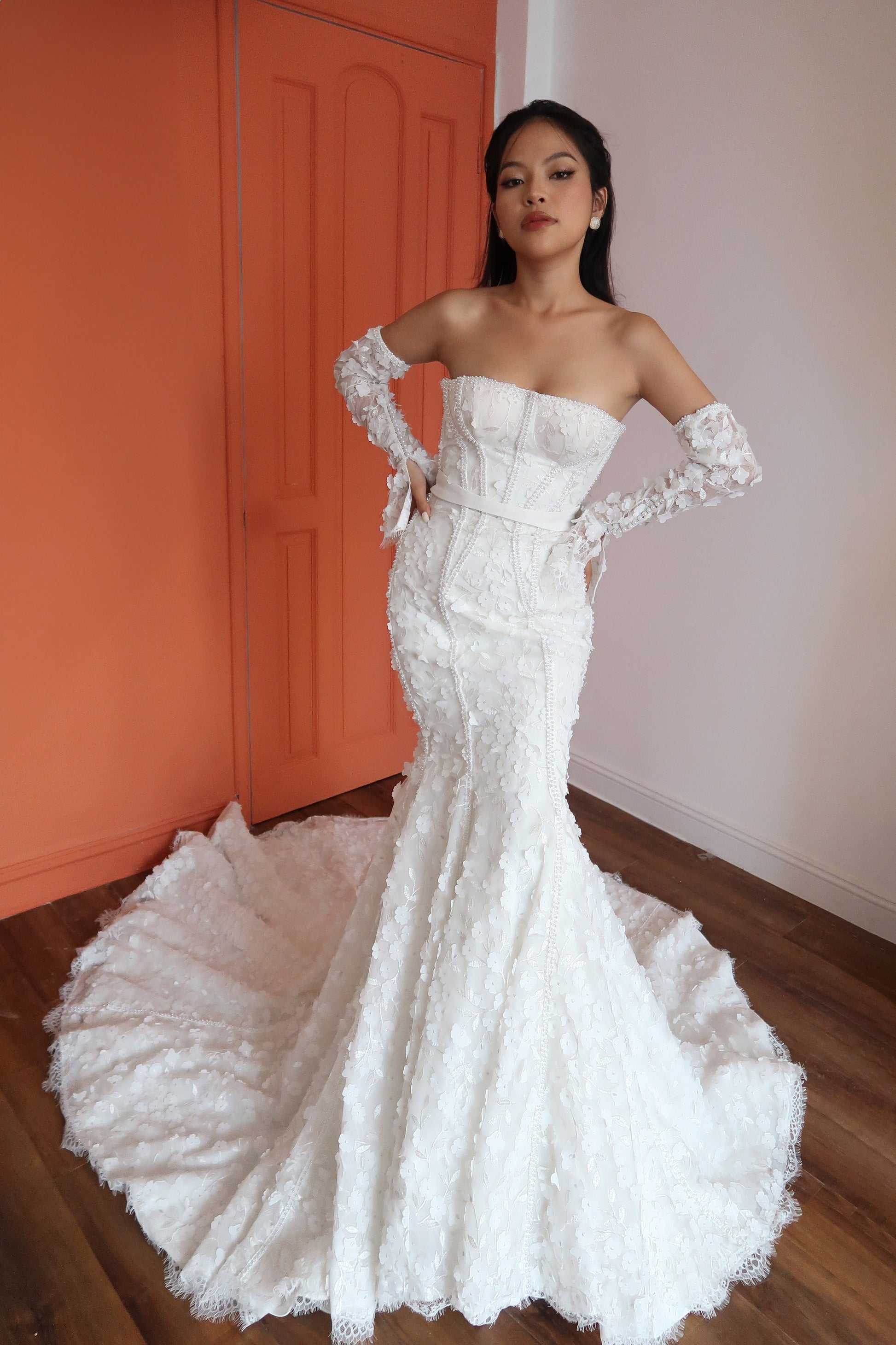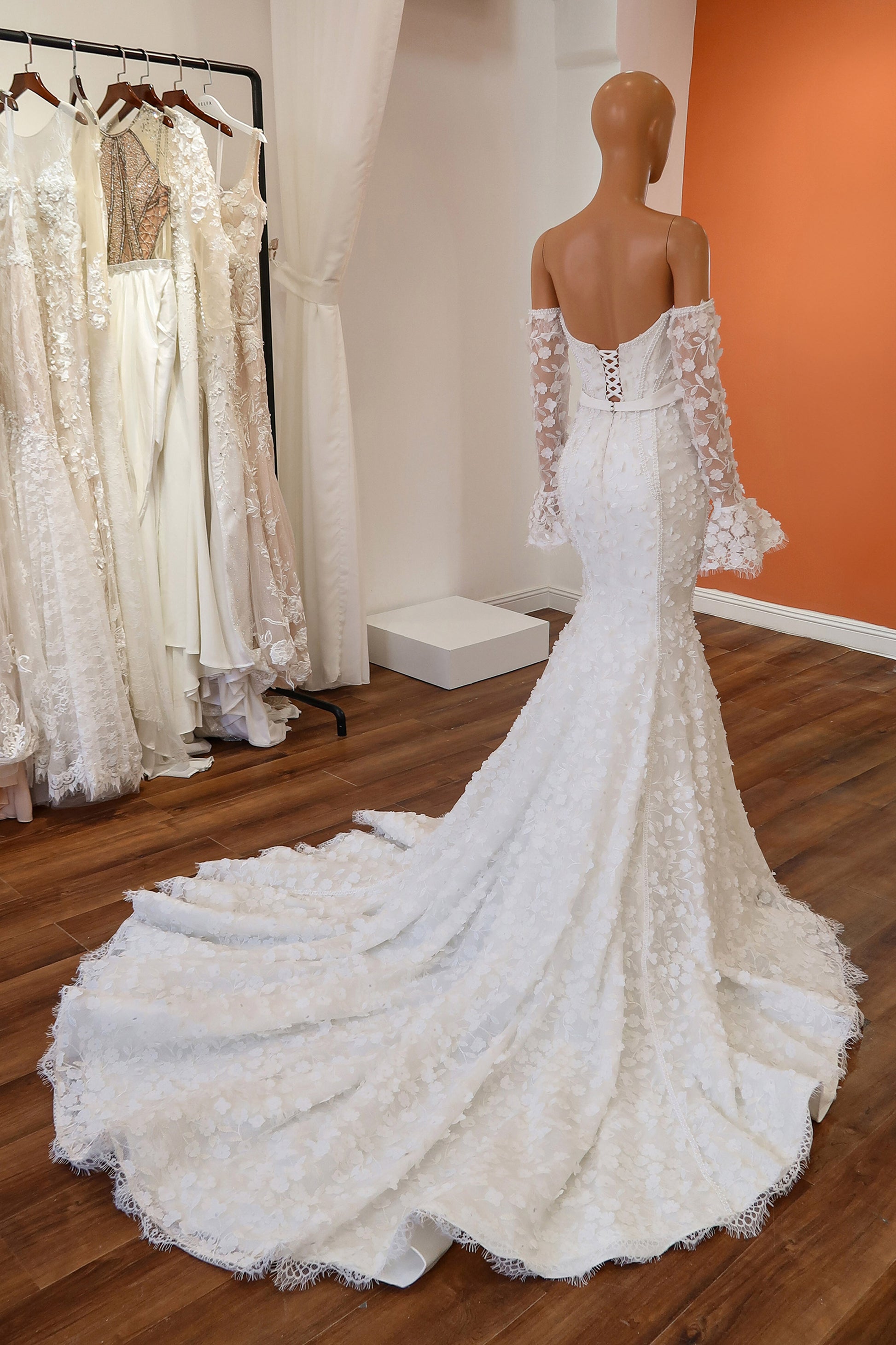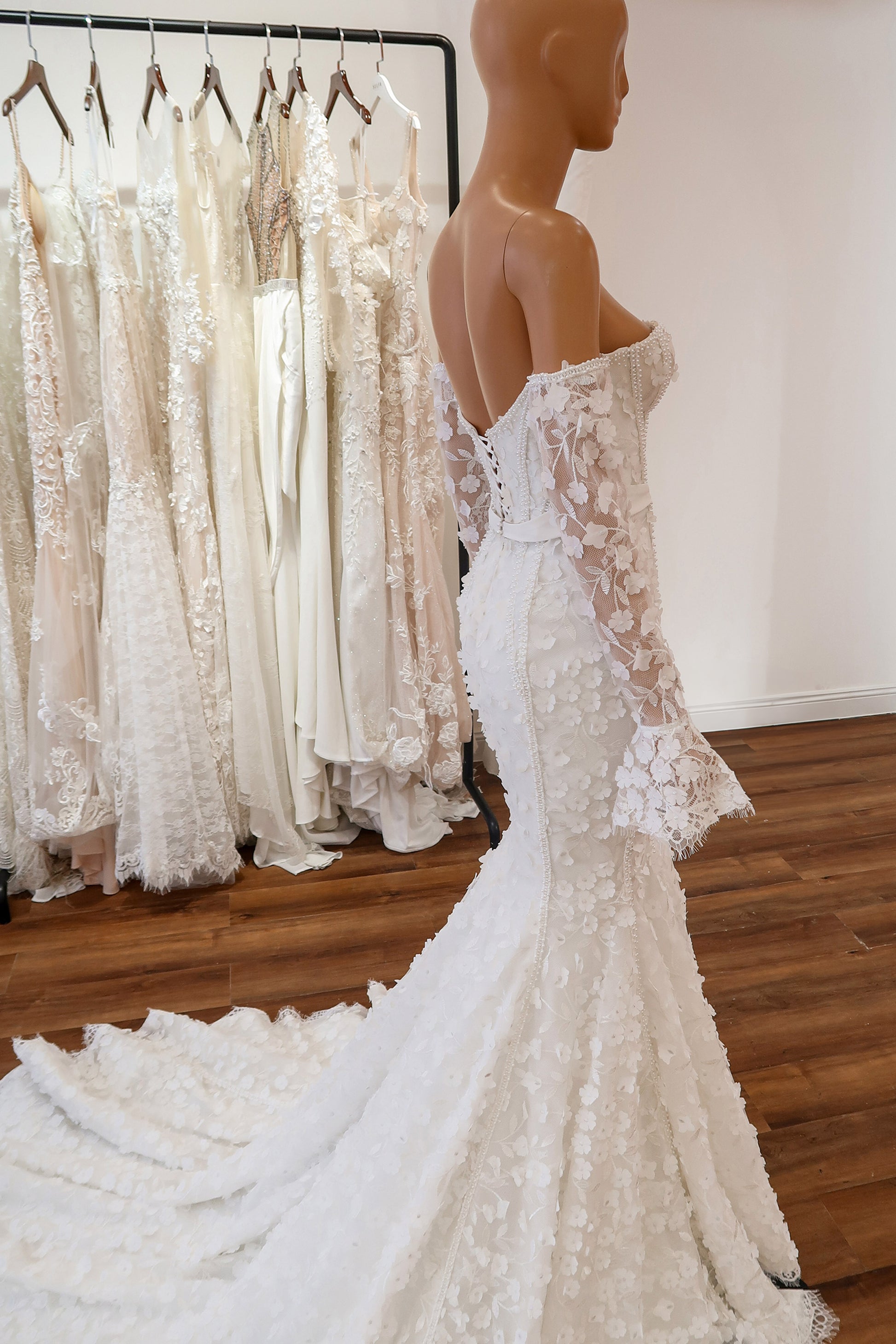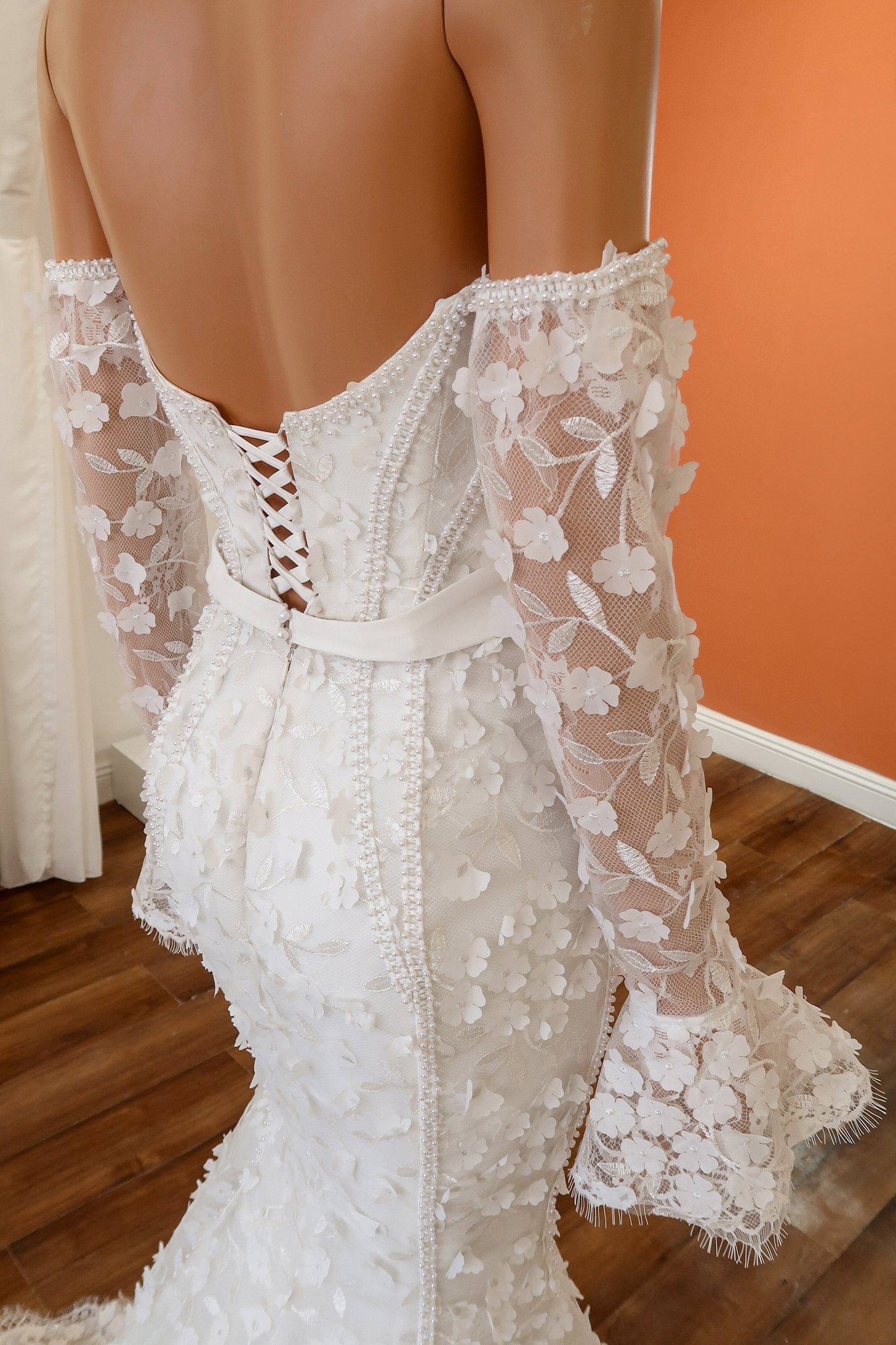 Mermaid Wedding Dress with 3D Floral Lace and Pearl Accents