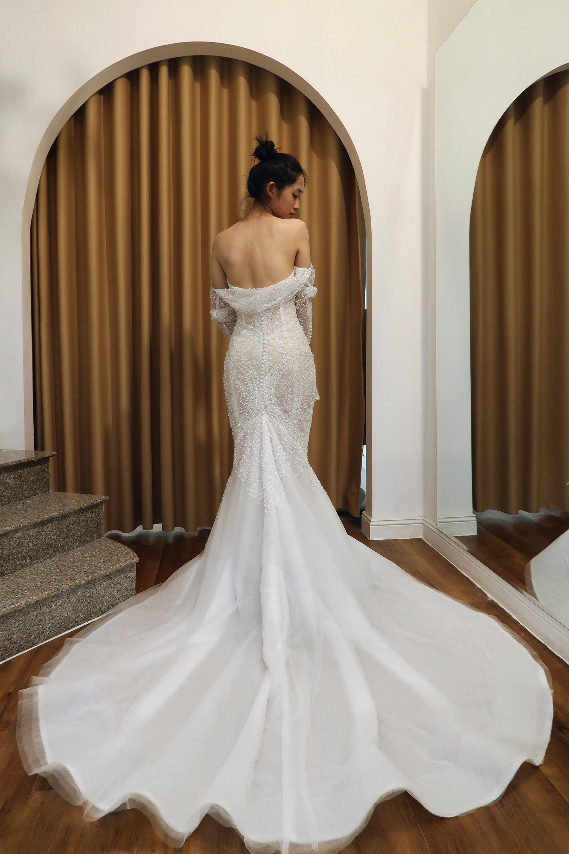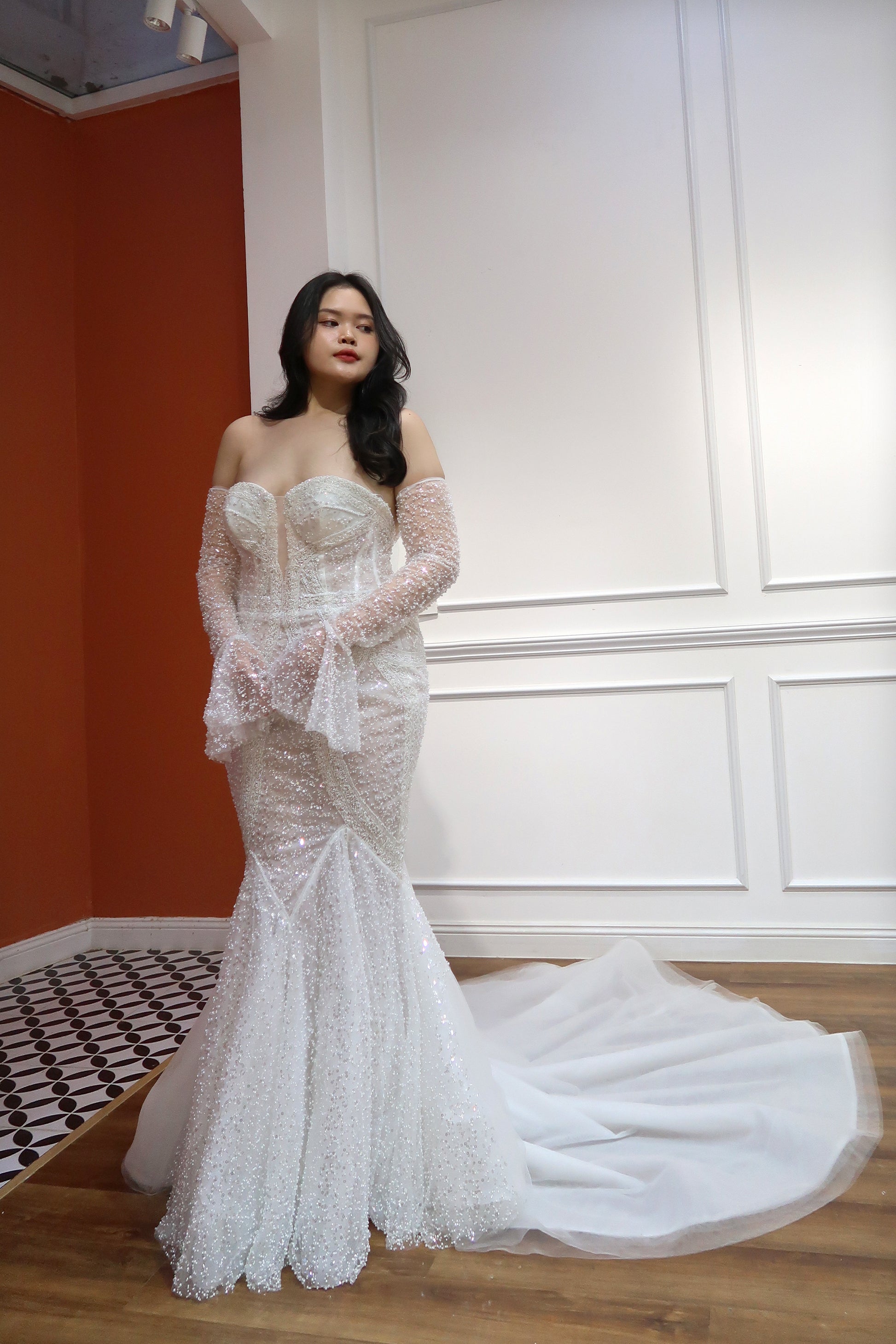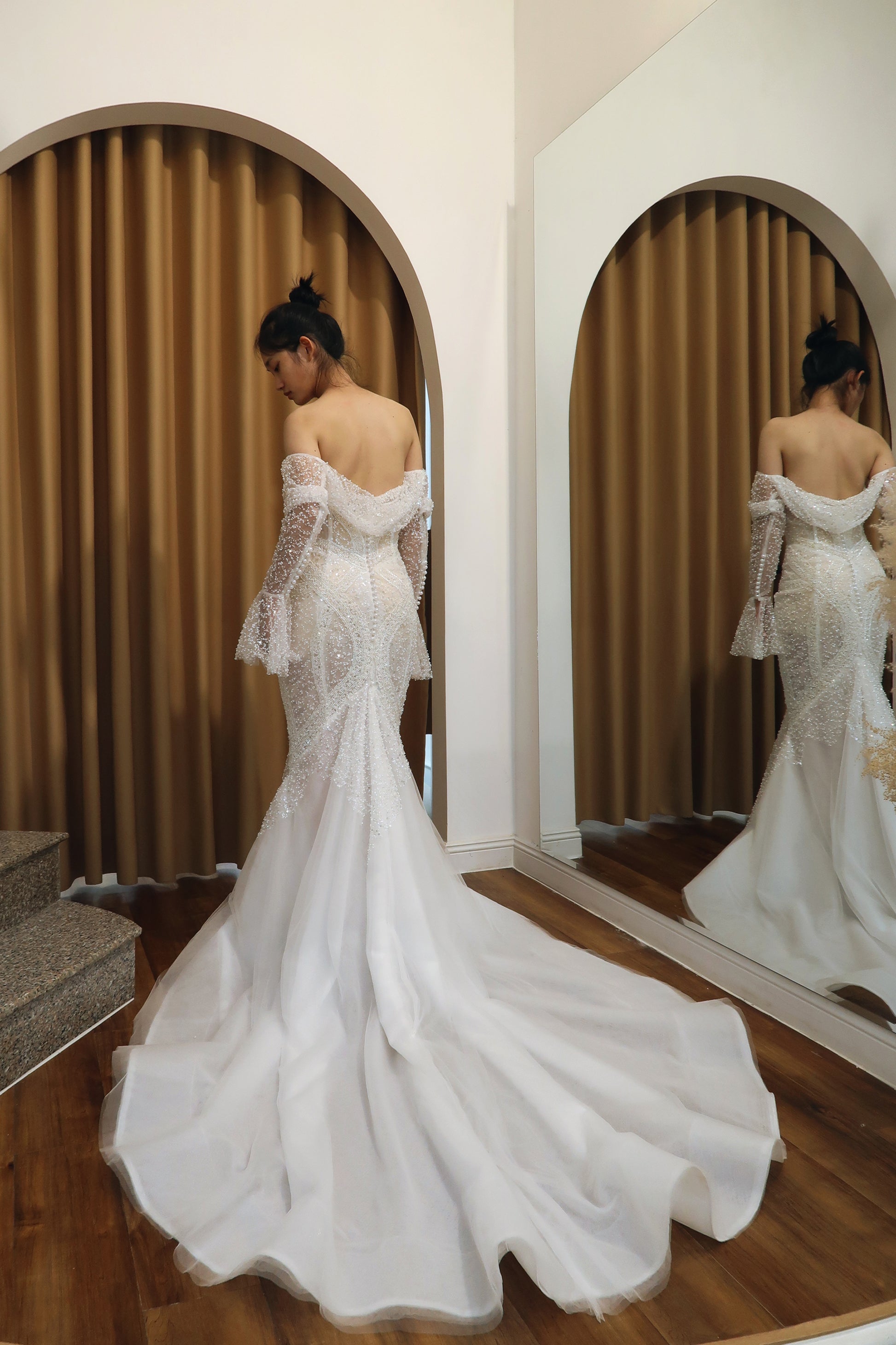 Detachable long sleeves make it easy to transition from your ceremony to reception.